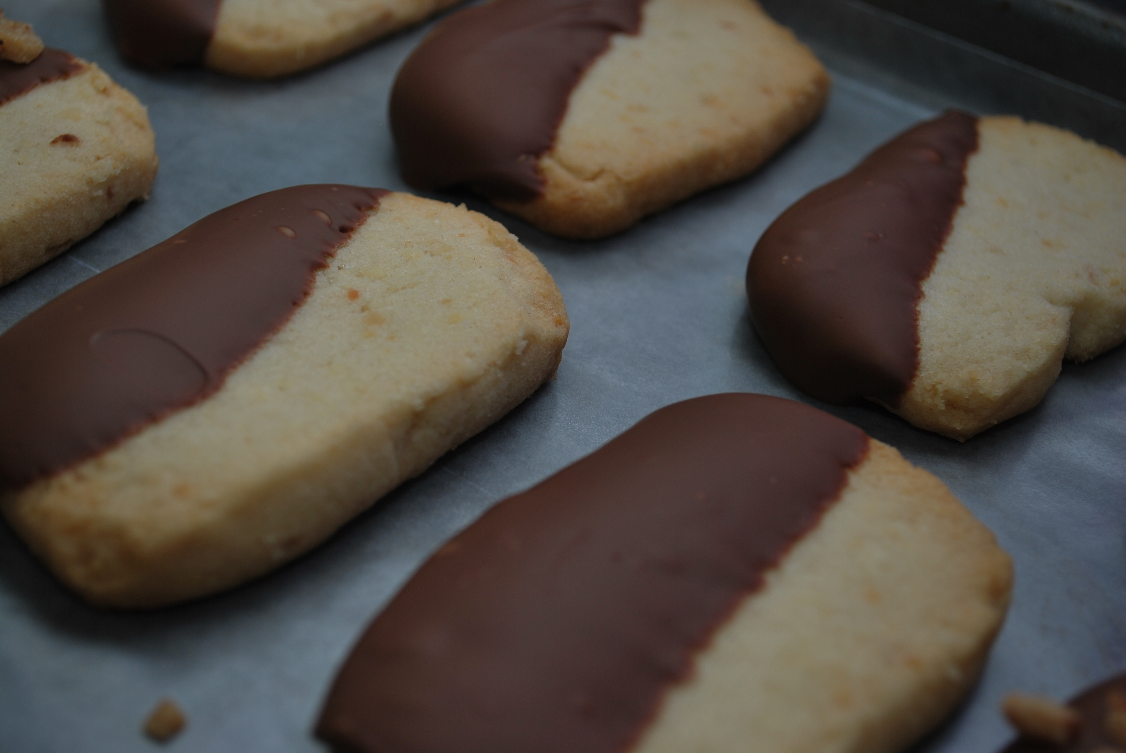 Macadamia Nut Shortbread Cookies dipped in Ghirardelli Chocolate © Photo rights reserved.