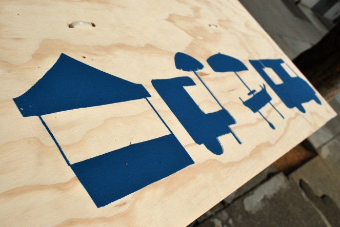 “Festival Seating” pulled together with these really cute painted wood planks and milk crates